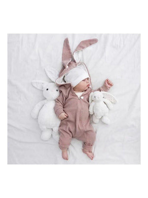 This incredibly sweet Bunny Baby Teddy Jumpsuit features 3D bunny-ears with ribbed lining that are attached to the hood, replicating cute and soft bunnies! A zipper runs from the top all the way to the bottom of the onesie for easy access. As a unique item, this versatile onesie is a perfect day-time outfit, pajama, costume, or all around seasonal outfit. Perfect for babies and toddlers, this onesie will make a special gift for a baby shower or to expand your little one’s wardrobe. This must-have item is guaranteed to melt hearts everywhere!