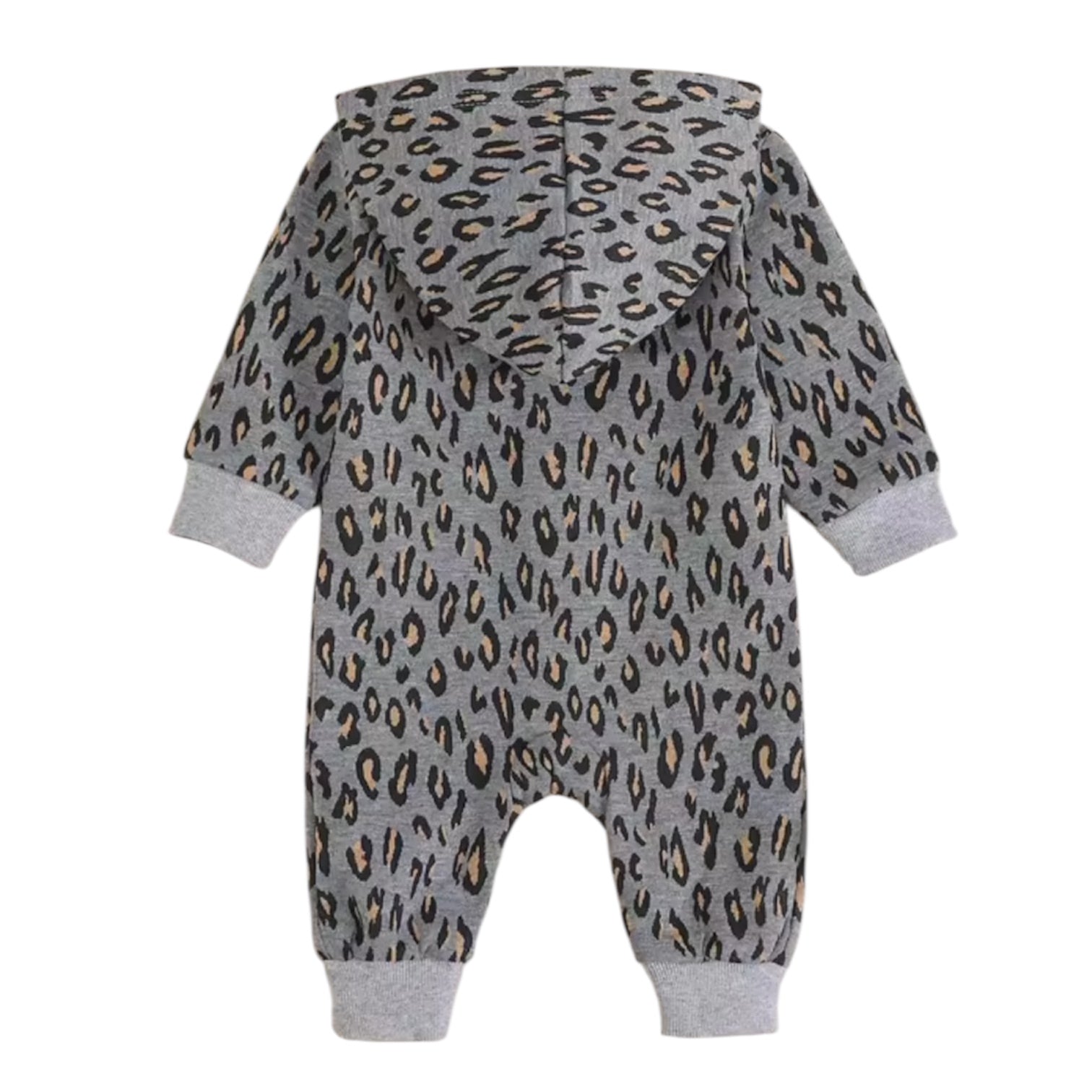 Baby Leopard Hooded Jumpsuit – Grey