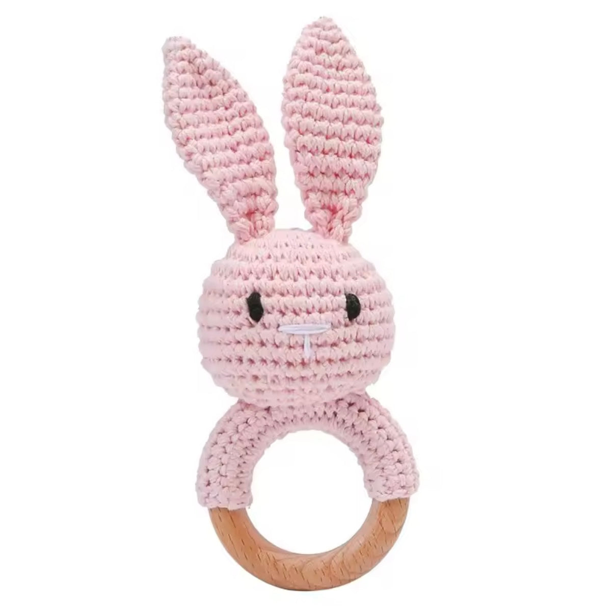 Gentle and timeless this Crochet Bunny Teether soothes little gums while adding a touch of natural charm. Crafted from 100% cotton yarn and smooth untreated beech wood, it’s safe for your baby to chew, easy to hold, and irresistibly cute. There is a bell in the rattle which can make a sound when it is shaken, which attracts the baby's attention.