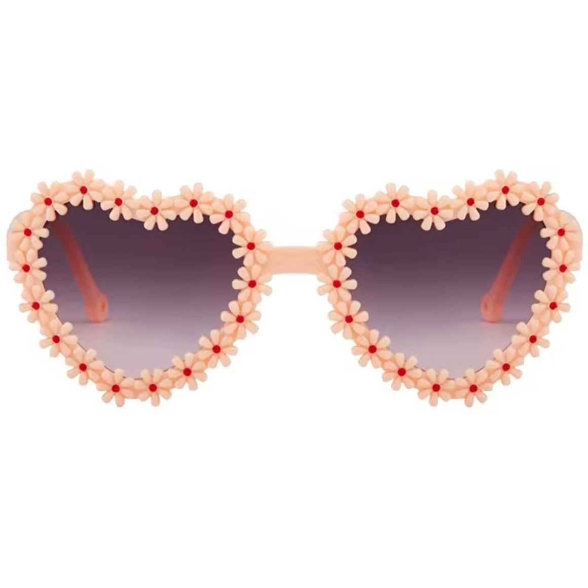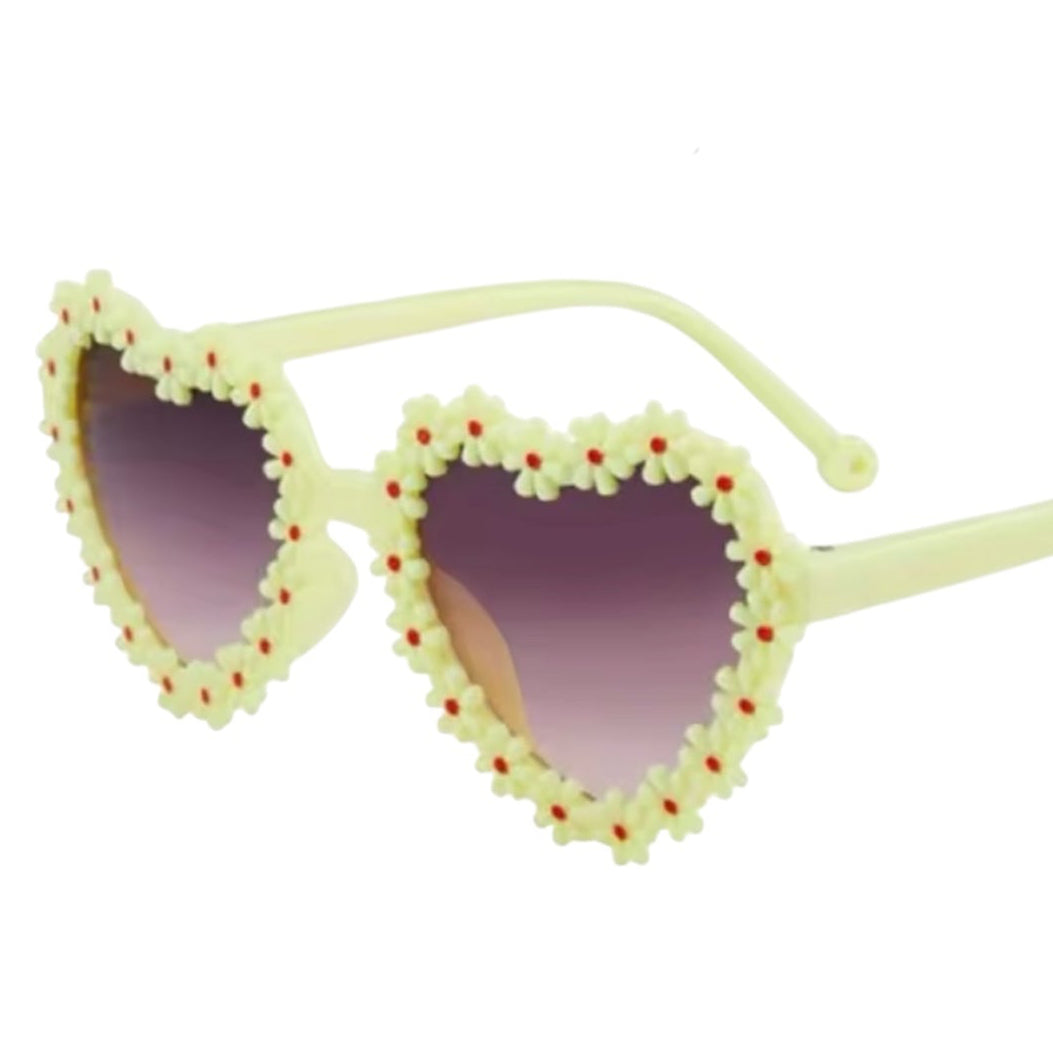 Make every sunny day extra special with these Kids Flower Heart Sunglasses. Designed with adorable heart-shaped lenses and a frame decorated with tiny flower details, these sunglasses are made for little ones who love colour, fun and summer vibes. The lightweight design sits comfortably on small faces, while the tinted lenses help protect young eyes from bright sunlight, perfect for beach days, holidays and everyday play.