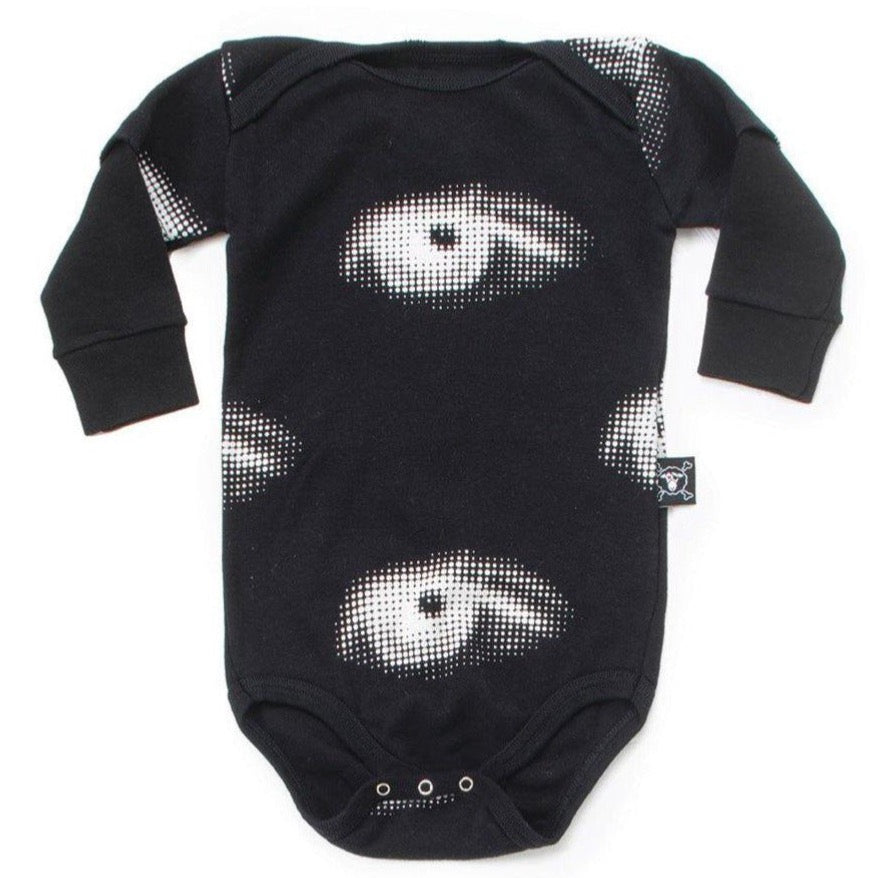 kind of like how adults wear their favorite band on their shirt, kids can have their favorite word. definitely a statement-making piece for boys & girls, this dope oversized black hoodie lets them start being “anti” early on with the word “no!” in a blown-up newsprint effect. the shoulders are slouchy & the yellow-lined hood is nice & oversized, so they can always hide from the world when things get too intense. kangaroo pockets are always good to shove hands in a dramatic show of frustration. as a bonus, our saying about growth is scrawled on the right sleeve: while you grow, you learn that as you grow, you stumble and while you stumble, you learn that as you learn, you grow.